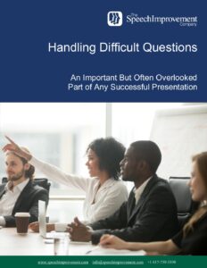 Imagine yourself in front of the executive committee, the board of directors, the press, or a client, and someone requests that you speak on an unfamiliar topic. Perhaps you are asked a tough question that you hadn’t anticipated. What do you say? Thinking on your feet is a module that teaches you how to process and organize your thoughts quickly in a way that will help you communicate clearly and with confidence