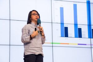Visual aids can help or hurt a presentation. Whether you are using PowerPoint, Keynote, Prezi, slides, video, a software interface, or other visual support, you need to make sure that the visuals won’t distract from the presentation. Many speakers have chosen abandon visual aids altogether and even proclaim that they are above using such tools. However, well-utilized visuals will significantly improve a presentation. This training will teach the best visual aid practices and offer the opportunity to practice techniques with individualized coaching feedback. Listeners will appreciate how the skillful use of visual aids truly enhances your presentations.